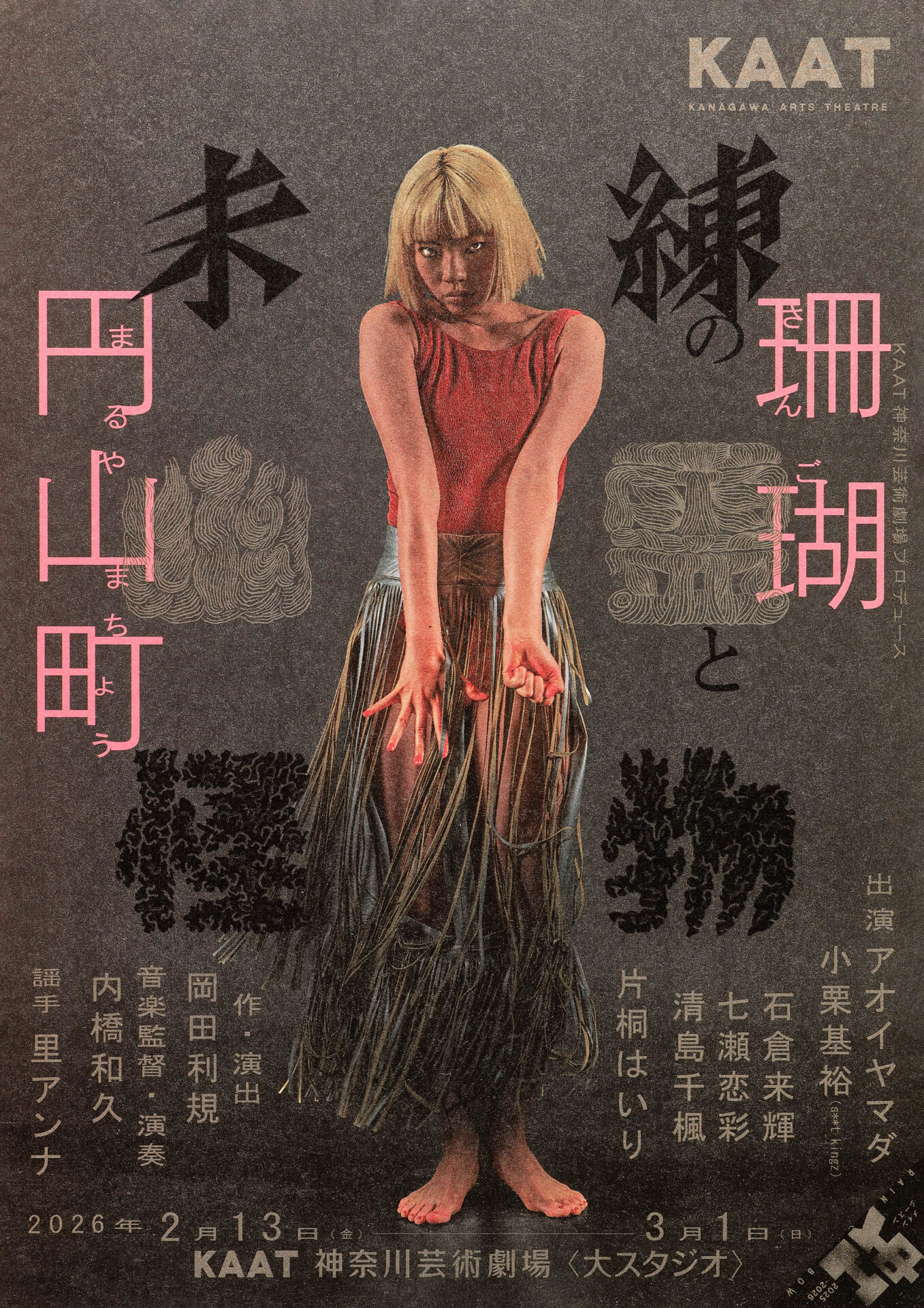 KAAT神奈川芸術劇場プロデュース『未練の幽霊と怪物―「珊瑚」「円⼭町」―』フライヤー(アオイヤマダ)