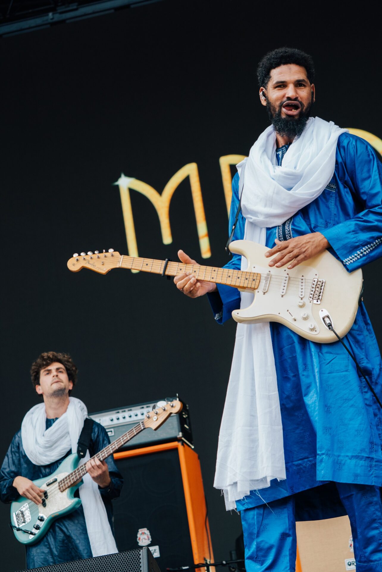 ほぼ指板に目をやることもなくうねうねとした音階でソロを弾き倒すMdouとひたすらに走りまくるSouleymaneのリズムであるが、両脇の2人も信じられない速度で手を動かしている。ギターのバッキングとベースのリフ。キックの4つ打ち以上に縦軸のグルーヴを作っているのは確実にこの2人。ベースのMikey Coltunはバンド唯一のアメリカ人メンバーながらMdouの音楽性に惚れ込み運転手やマネージャー、そしてアルバムプロデュースまで兼任するに至ったなんて逸話の持ち主でもある。足元の機材ほったらかしで客席に飛び込んでギターを弾きまくるMdouのエフェクターを、時折踏んであげる瞬間がどちゃくそに萌えポイントであった(笑)。