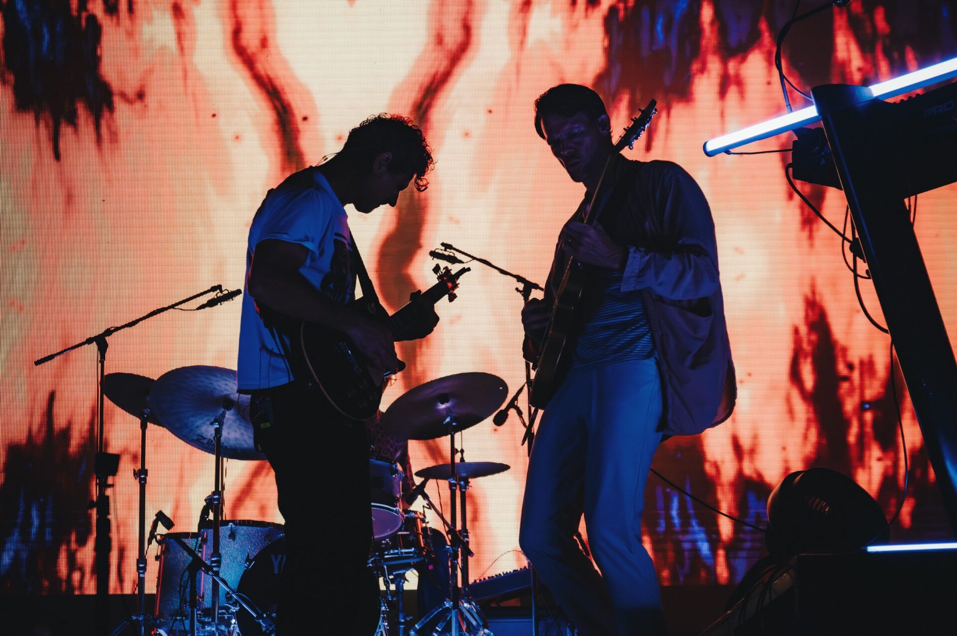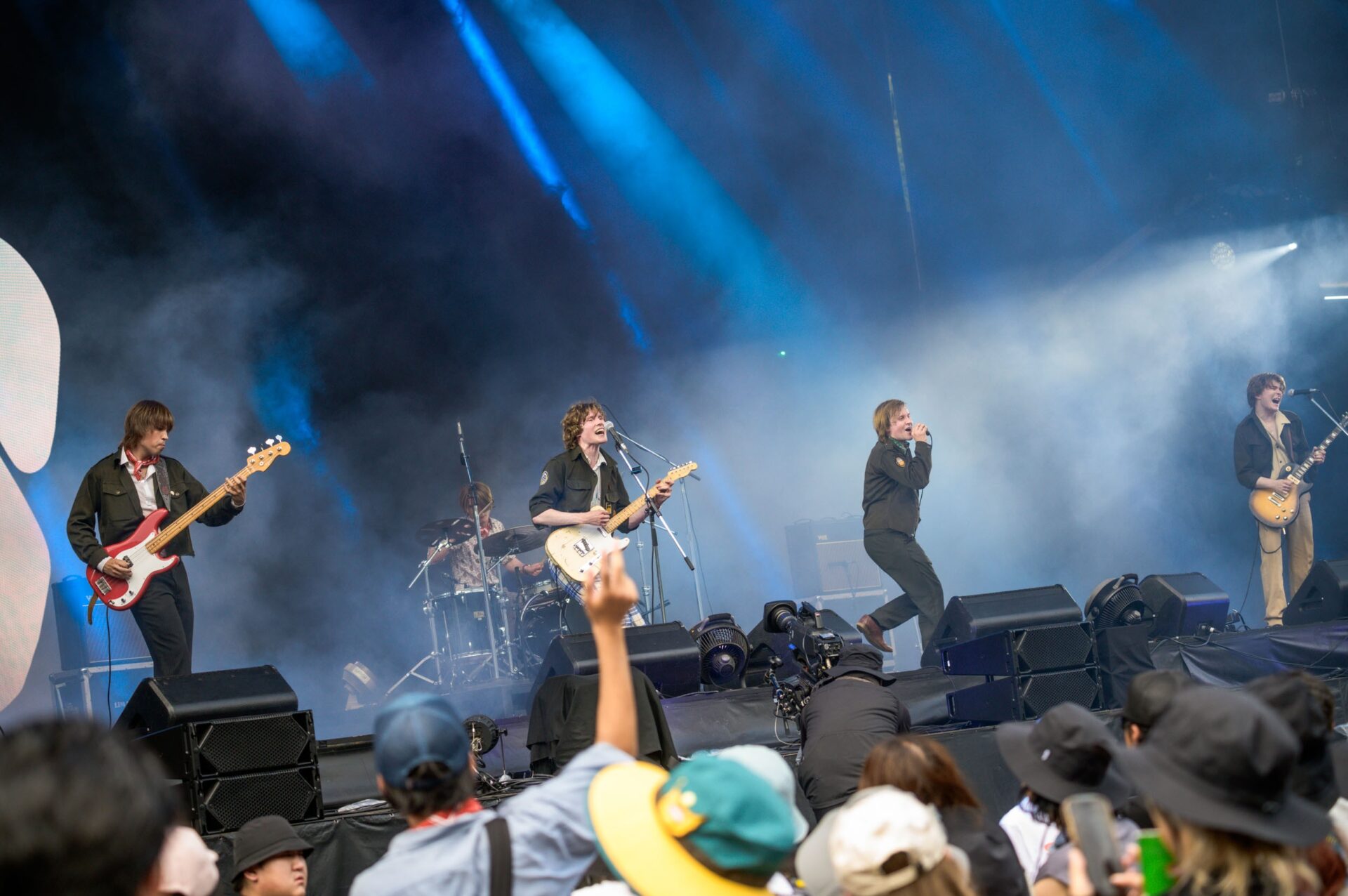 昨年とは覚悟が違うのか、ミリタリー調のショート丈ジャケットで揃えた5人の中で特にフロントを務めるテオ・ヒルヴォネンの目つきのギラつき度合いが異常。実兄でありバンドのアイコン的なハーモニカを操るパン・ヒルヴォネンも縦横無尽に暴れまくりの吹きまくりだ。時折挟み込まれる「Hop On A Cloud」の様なポップ感あふれるナンバーでは、オーディエンスも楽しそうにクラップ。ラストにプレイされた「While You Danced」ではバックスクリーンのロゴがフジロック仕様になるなど、フジとバンドの相思相愛っぷりがとても頼もしかった1発目であった。