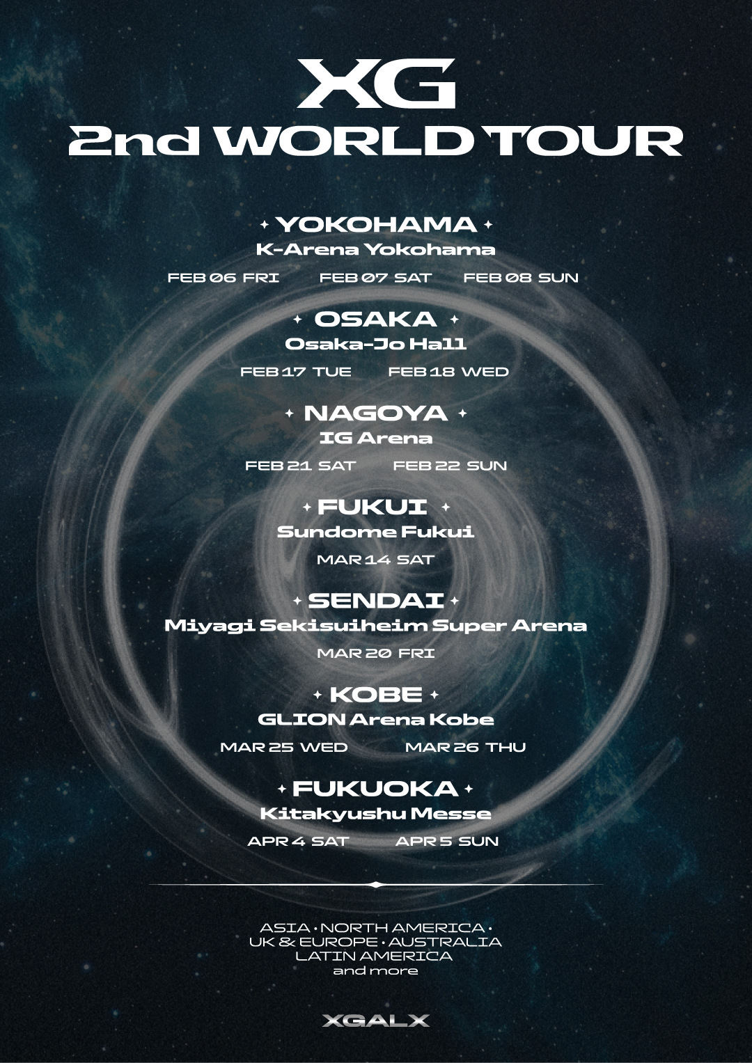 そんな大盛況のファースト・ワールドツアー終幕から1年経らずでの開催となるセカンド・ワールドツアーは、来年1月23日(金)のファースト・フルアルバムを発売して迎える初のツアー。XGが創り出す新たなジャンル”X-POP”を、唯一無二の世界観と圧倒的なパフォーマンスで証明し、XGの真髄に迫る。