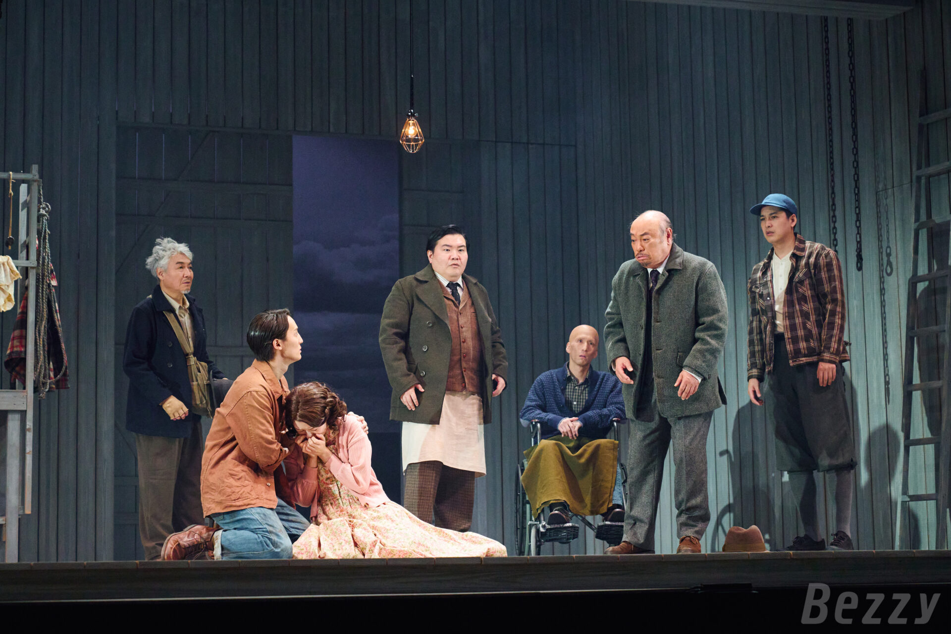 しかしながら……繰り返すが、1944年に書かれたとは思えない作品だ。アメリカの片田舎らしい閉塞感や、ほんの少しのバランスで崩れそうな人間関係の機微を描き出すのはアーサー・ミラー戯曲ならではという感があるが、『死と乙女』(アリエル・ドーフマン)の世界初演でローレンス・オリヴィエ賞最優秀作品賞を受賞し、イギリスの名だたる劇場で活躍を続けるリンゼイ・ポズナーの演出は、ため息が出るほど繊細で、無駄がない。俳優の一挙手一投足が、セリフの1つ1つ全てが明確に意味を持つ。非常に寓話めいた作品でありながら、観る人は皆、デイヴィッドの抱える不安感やそれにともなう振る舞い、周囲の人の行動を見て、つい自らの実生活と重ねてしまうはずだ。