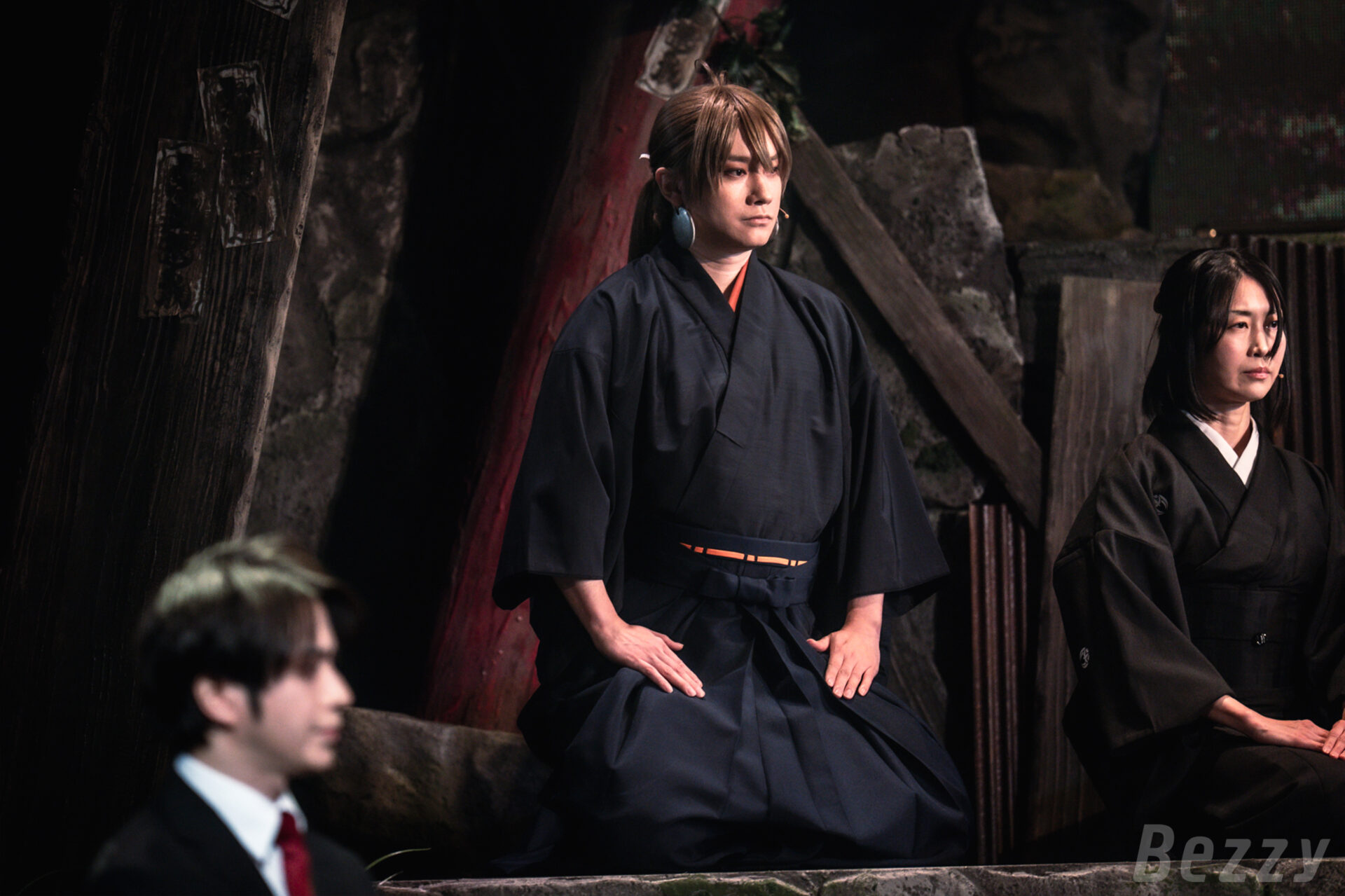 また、彼らを固める他のキャストも素晴らしい。特に今作のヒロインとも言える龍賀沙代役を演じた岡本姫奈の存在感が際立つ。2022年に乃木坂46に加入、舞台経験は2024年の『乃木坂46“5期生”版 ミュージカル「美少女戦士セーラームーン」2024』のみで、外部の舞台は初出演となる彼女。しかし本格的にバレエをやっていたというキャリアも関係するのか、立ち姿が非常に美しいし、何より声がとても良く通る。龍賀の一族に囚われながら、外の世界に憧れる沙代という役柄はこの作品のキーマンでもある難役だが、見事に演じている。ファンならずとも、今後の舞台分野での活躍が楽しみになった人も大いのではないだろうか?