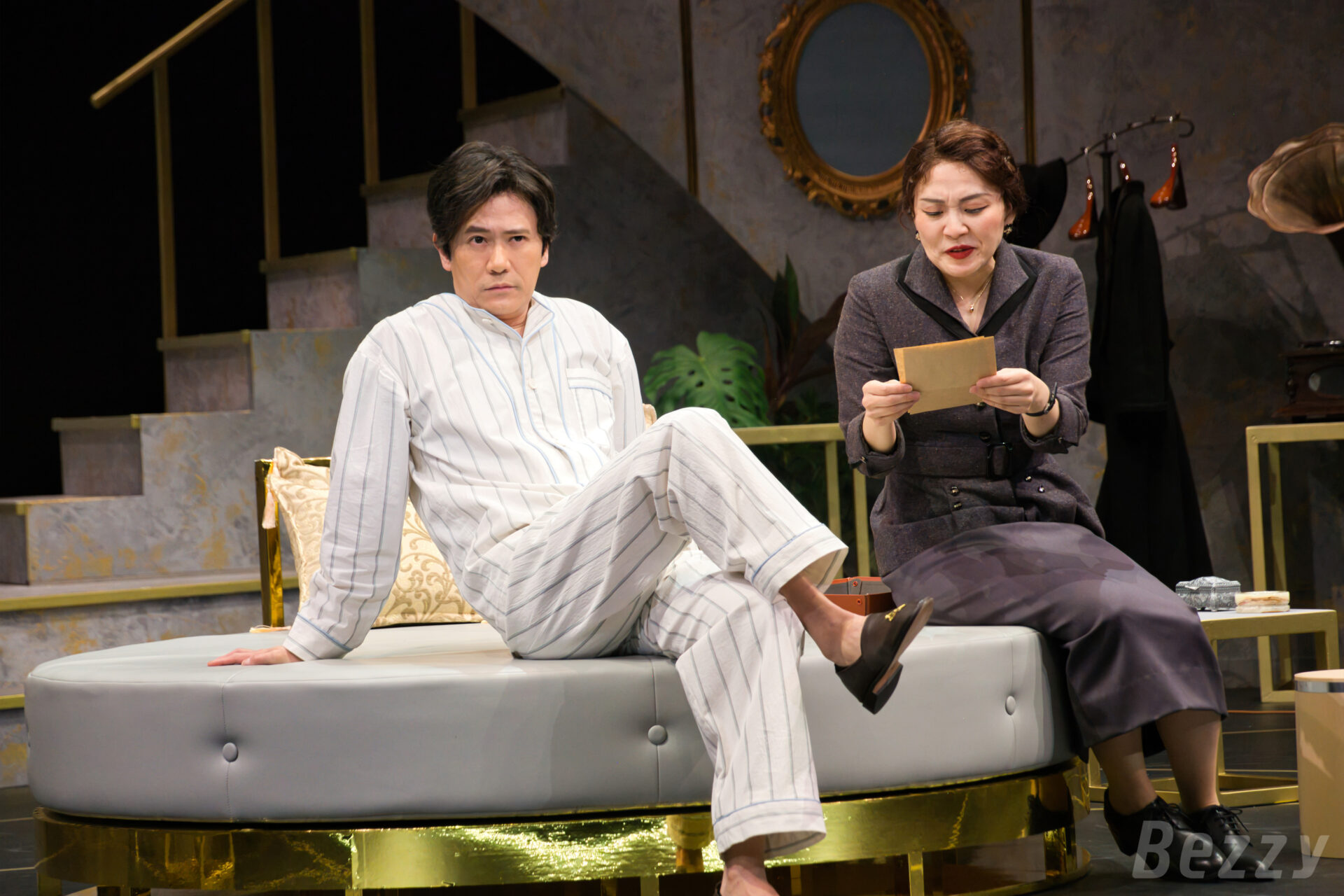 舞台上のギャリーは、自宅でオフの時間を過ごしているにも関わらず、その周りには常に他人の姿がある。ほぼ元妻で今はビジネスパートナーであるリズ(倉科カナ)に、秘書のモニカ(桑原裕子)、演劇プロデューサーのヘンリー(金子岳憲)、マネージャーのモリス(浜田信也)といった仕事上の欠かせない仲間でありよき理解者たちに、彼の身の回りの世話をする付き人兼使用人のフレッド(中谷優心)、家政婦のミス・エリクソン(広岡由里子)。そこに、スターとしてのギャリーに強烈な関心と愛情と、ときには執着を持って近づくのが、女優志望のダフネ(白河れい)に脚本家志望のローランド(望月歩)、そしてヘンリーの妻であるジョアンナ(黒谷友香)だ。