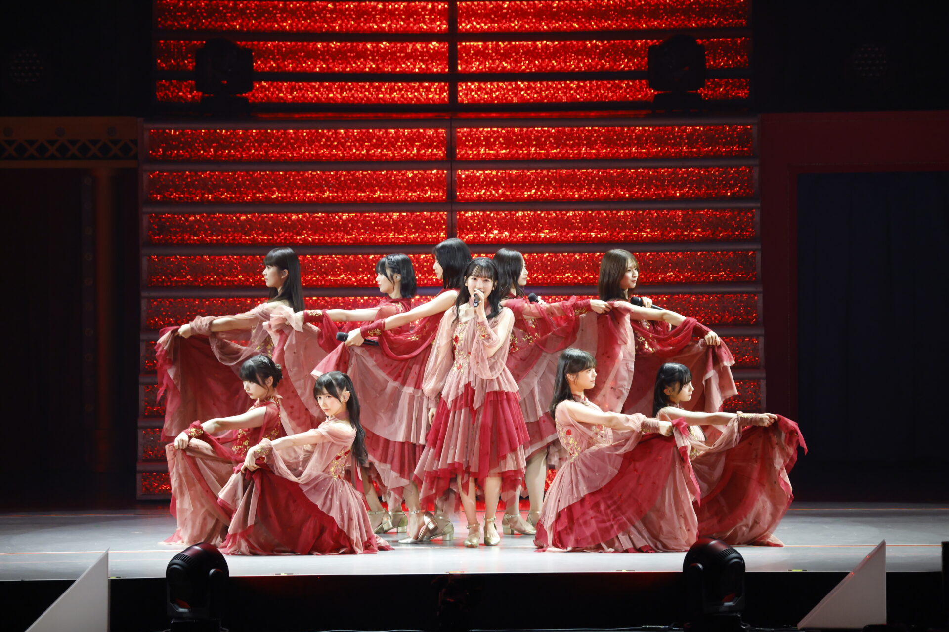 ここからライブは終盤戦。『My respect』DISC1に収録されたシングル表題曲のラッシュが始まる。遠藤がセンターを務めた齋藤飛鳥卒業シングル「ここにはないもの」ではその2人の関係性、これぞリスペクトなセンター起用にイントロから大きなどよめきが起こり、「人は夢を二度見る」では山下、そして昨年11月に卒業コンサートを終えた久保史緒里が務めたWセンターの座を昨夏のツアーで共に重要な役割を担った一ノ瀬美空と川崎桜が引き継いでのパフォーマンスとなった。そして「Actually…」の重低音が会場を揺らし、「Same numbers」の切ないメロディが会場を彩り、「ビリヤニ」のキュートな振り付けが会場を夢中にさせたところで、本編ラストは超絶ぶち上がりの「おひとりさま天国」。その直前の「真夏の全国ツアー2026」サプライズ発表がお祭り騒ぎに拍車をかけ、最高潮の盛り上がりを記録する形で本編は終了。