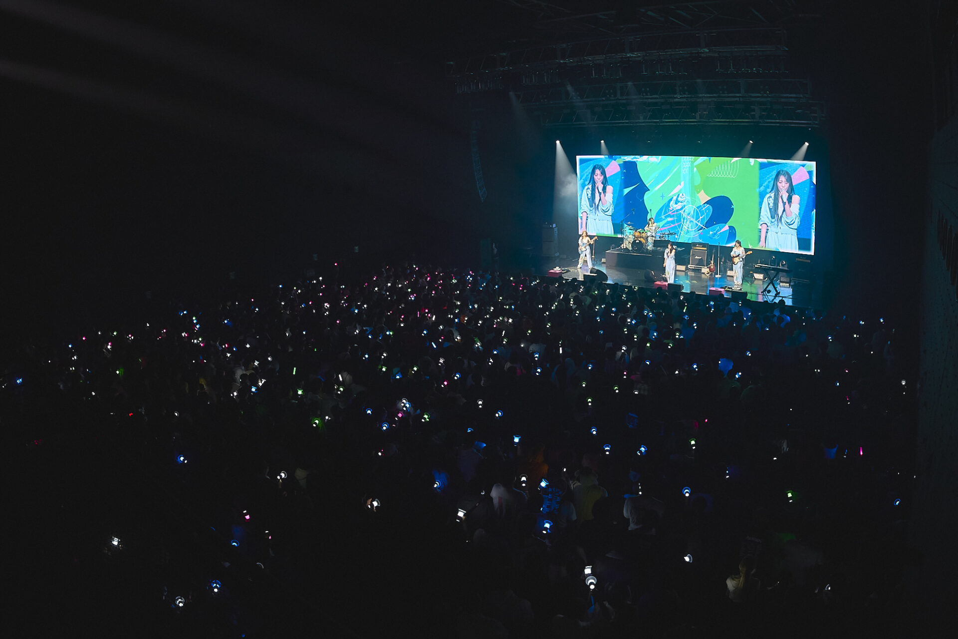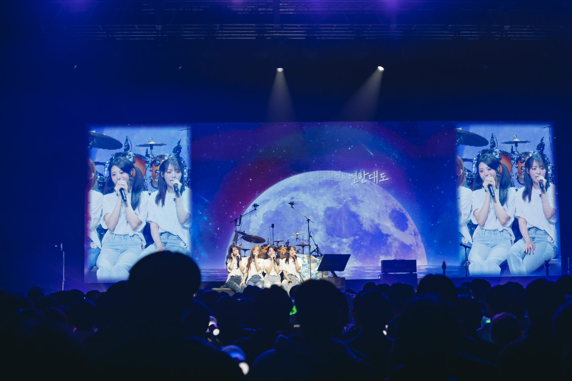 ライブでは自己紹介から始まる「FAKE IDOL」、「もどかしさを吹き飛ばすために、爽やかな曲を」とはじまった弾けるリズムの「SODA」、i-dle(アイドゥル)のSOYEON(ソヨン)が作詞・作曲/プロデュースを担当した「My Name is Malguem(私の名前は晴れ)」では全員がボーカルをとり、QWERの強みをいかんなく発揮。しっとりとしたバラード「Harmony of Stars(星のハーモニー)」ではSIYEONの圧巻のボーカルに、曲が終わると自然に拍手が起きた。アンコールではみんな楽器を置いて、「Yours Sincerely」を歌い上げる。この曲はメンバー全員が作詞に参加し、バウィゲを思って歌詞を書いたファンソング。「時には遠く離れていても いつもあなたのそばに私がいるよ」で締めくくられる歌詞を、4人は肩を寄せ合って、手を繋いで歌い上げた。