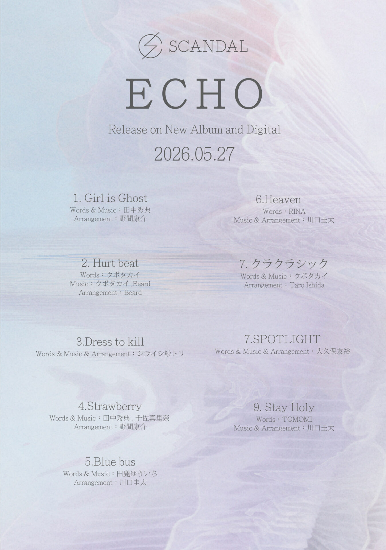 「同一メンバーによる最長活動ロックバンド(女性)」のギネス世界記録を保持するSCANDALが、5月27日(水)にリリースする12thオリジナルアルバム『ECHO』の収録曲とジャケット写真を公開した。