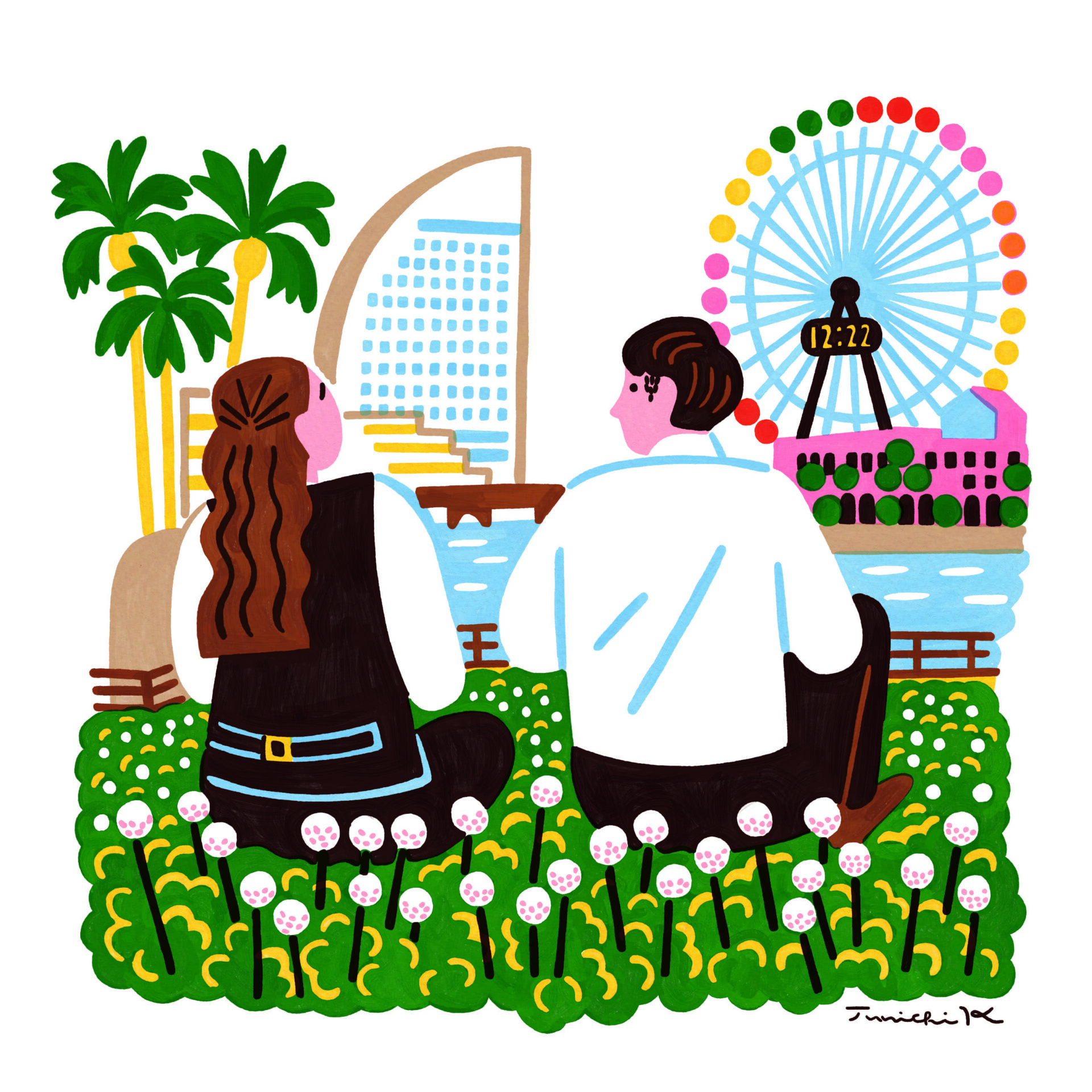 さらに、横浜市出身のイラストレーター・岸潤一による描きおろしイラスト6点も到着。印象的なシーンをポップな色合いで切り取った6点が作品の世界観を鮮やかに描いている。
