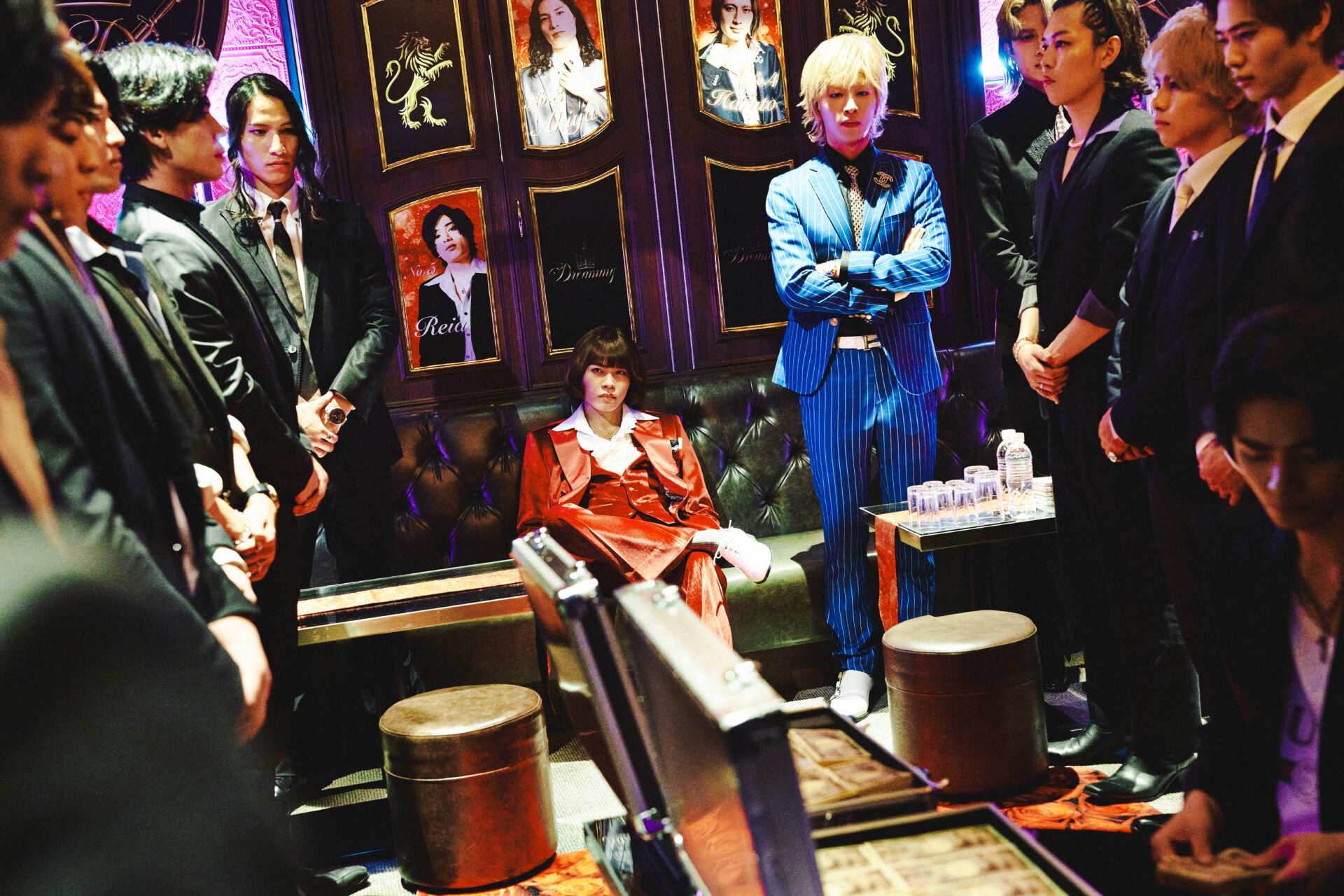今回解禁された場面写真は、ピエール瀧演じる組長・岩城良平やパク・ジファン演じる韓国ヤクザのチャン・イス、上田竜也演じる新宿最大ホストグループの総帥・海斗などを捉えた全9点。トレードマークのパンチパーマとサングラスの奥から険しい表情を覗かせる岩城は、オールドスクールなヤクザで常にバイオレンスの予感を漂わせる。