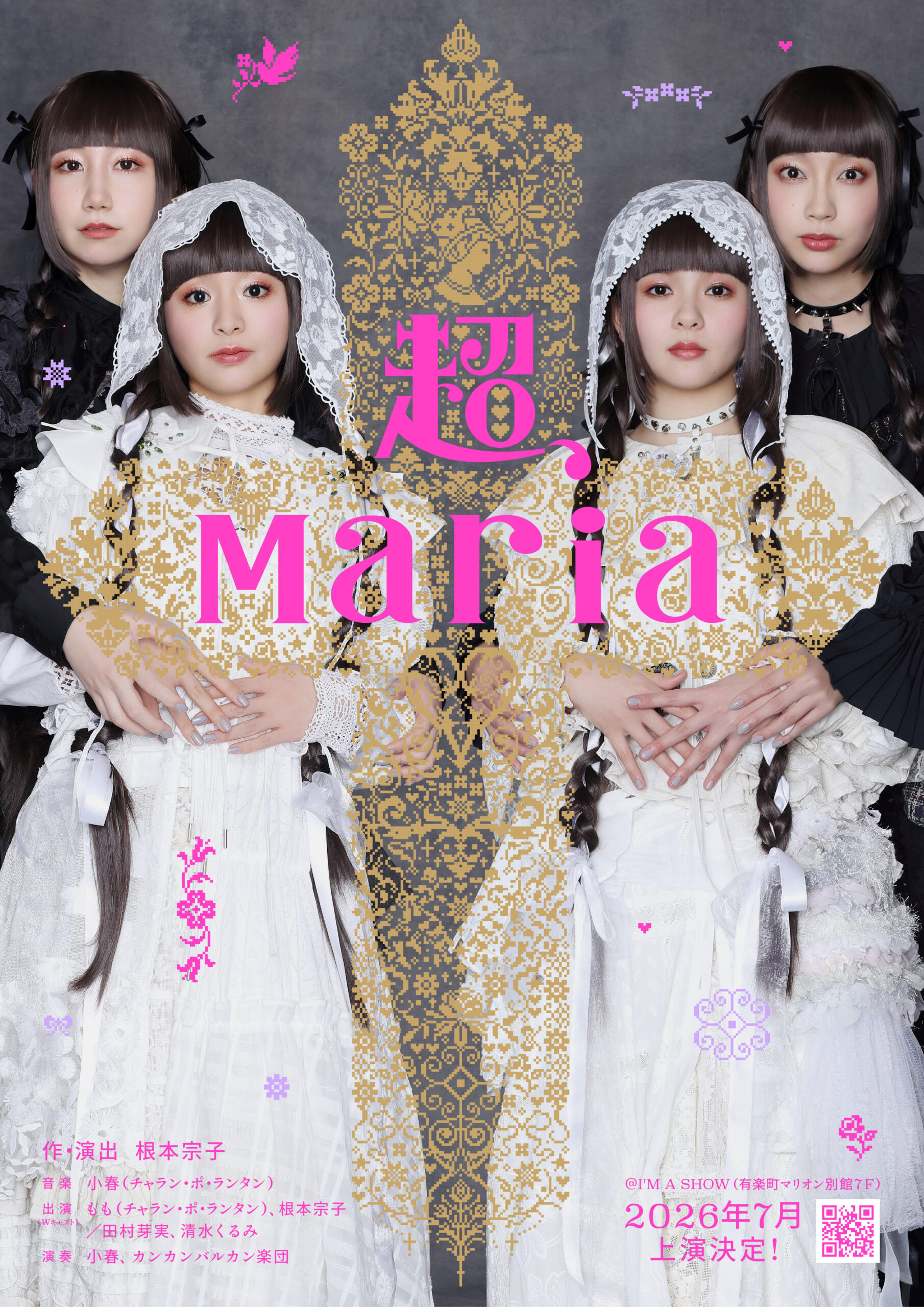 劇作家・演出家・俳優としてマルチに活躍する根本宗子と、音楽ユニットのチャラン・ポ・ランタンによる音楽劇『超、Maria』が7月に東京・I’M A SHOWにて上演されることが決定した。 完全オリジナルの音楽劇となる本作は、チャラン・ポ・ランタンのボーカルももと根本による二人芝居として2020年に初演。同じくチャラン・ポ・ランタンの小春が手がけた音楽では小春とカンカンバルカン楽団の生演奏が舞台を彩り、その後コロナ禍では配信用の新たな演出で完全無観客、カメラ1台で収録した映像が配信上演され大きな話題を呼んだ。そんな伝説的な舞台が今回は初演メンバー(もも×根本宗子)によるオリジナルペアに加え、根本と… <a class="more-link" href="https://bezzy.jp/2026/01/80235/"></a>